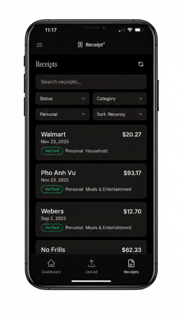 AI reads every receipt automatically - vendor, amount, date, items - organized in seconds.